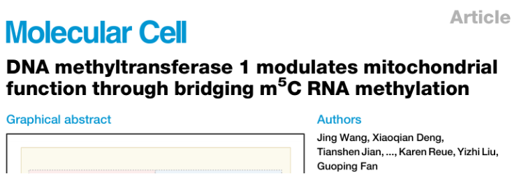 文章标题:DNA methyltransferase 1 modulates mitochondrial function through bridging m5C RNA methylation