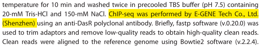 染色质免疫沉淀测序(Chromatin Immunoprecipitation Sequencing, ChIP-seq):分析DasR在基因组上的结合位点,验证其对disA基因的转录调控。