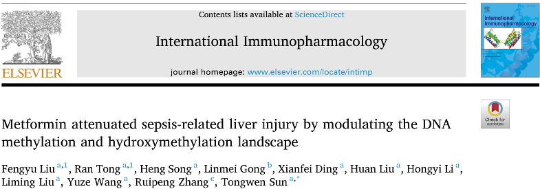 Liu F, Tong R, Song H, Gong L, Ding X, Liu H, Li H, Liu L, Wang Y, Zhang R, Sun T. Metformin attenuated sepsis-related liver injury by modulating the DNA methylation and hydroxymethylation landscape. Int Immunopharmacol. 2025 May 7;157:114748.doi: 10.1016/j.intimp.2025.114748.