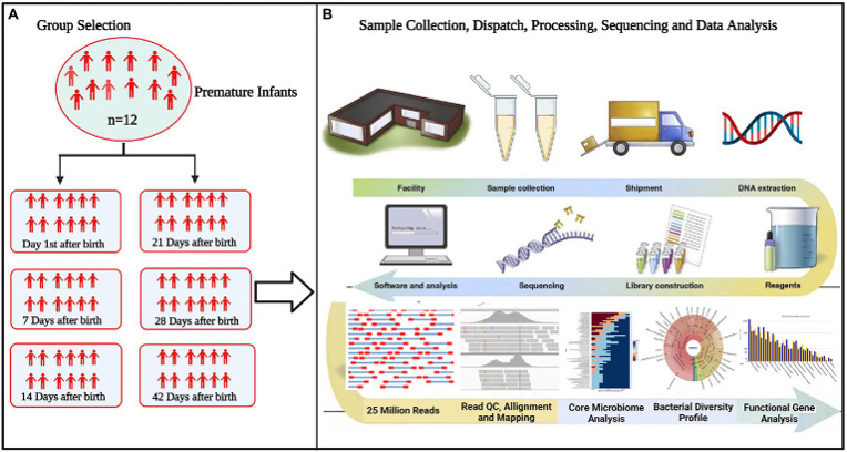 2023年02月17日,中国农业科学院深圳农业基因组研究所Adnan Khan、云南省第一人民医院米弘瑛为共同第一作者,中山大学附属第六医院郝虎/李思涛、南方医科大学附属佛山市妇幼保健院戴怡蘅为论文共同通讯作者在《Front Microbiol》杂志以“Dynamic changes of the gut microbial colonization in preterm infants with different time points after birth”为题发表研究论文。该研究通过微生物组学的16s RNA等实验揭示了12名早产儿在出生后第1、7、14、21、28、42天六个时间点(C1、C2、C3、C4、C5、C6)肠道微生物定植过程中的动态变化,为早产儿在出生后不同时间点针对性细菌治疗提供新的视角。深圳易基因科技为本研究提供微生物组测序分析服务。