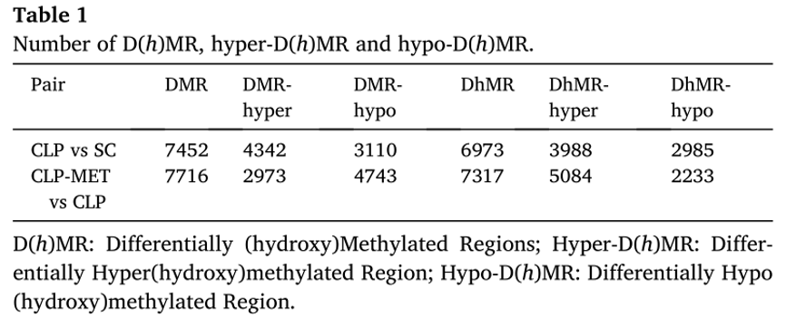 图1:二甲双胍在CLP相关SLI下调控DNA甲基化和羟甲基化谱。